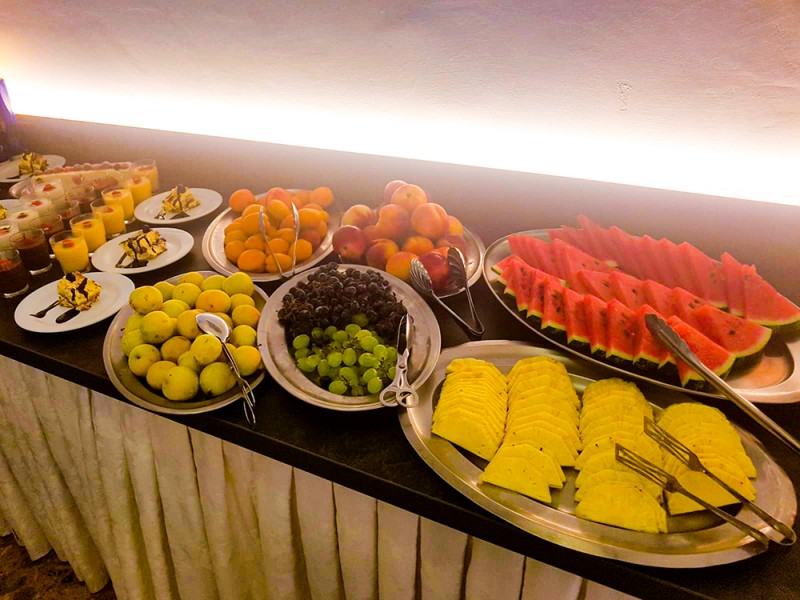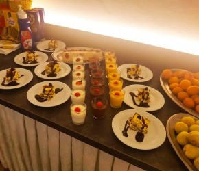 The restaurant with table service and flexible entry times (lunch 12.30pm - 1.15pm and dinner 7.30pm - 8.15pm), offers rich and elaborate buffets of vegetables and appetizers, suggests extensive choice of menus with daily specials at based on meat, fish and vegetables . Dessert of your choice .
