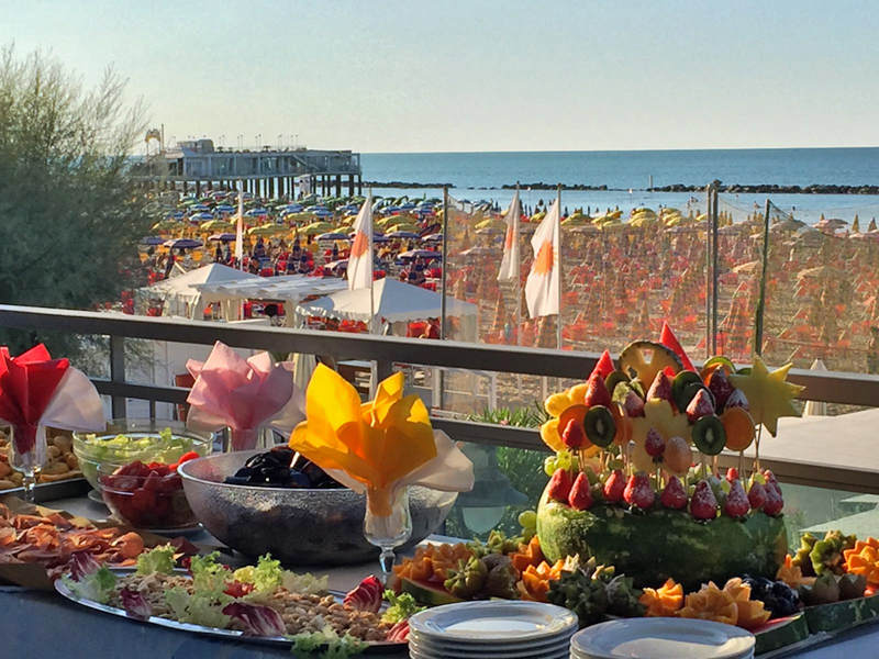 - Occasionally aperitif, themed dinner or typical Romagna dinner, evening with large buffet of desserts and fruit . During these special evenings all our staff dedicate themselves to your entertainment with costumes and games, famous cartoon mascots entertain your children. There's certainly no shortage of fun!